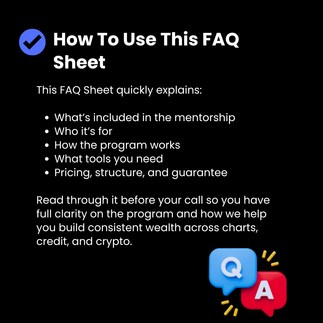This FAQ Sheet gives you concise, transparent answers about the program — what’s included, how it works, and who it’s designed for — so you can make a confident decision before you apply.